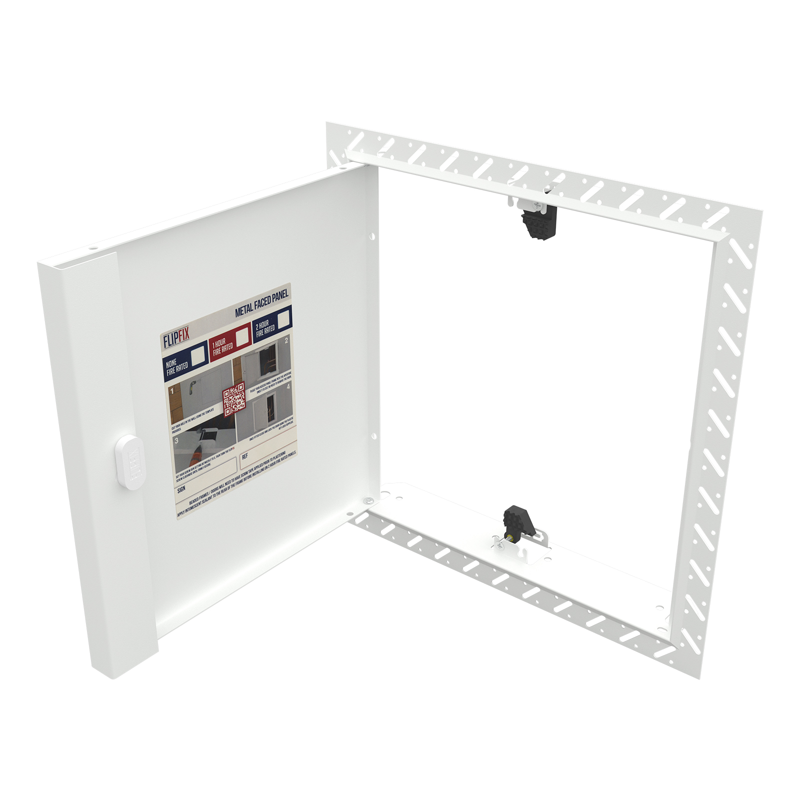 - Fire rated panels come with our spring-loaded ClickFix hinge. This allows for the door to be removed if required for maintenance/access.